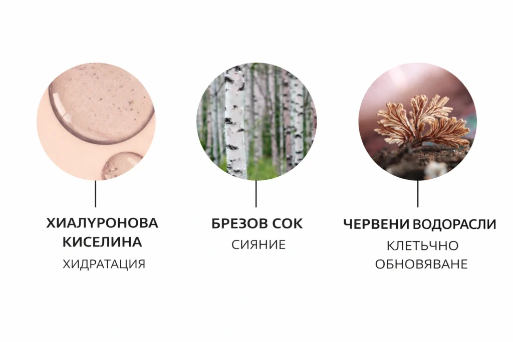 Ethylhexyl palmitate, caprylic/capric triglyceride, polysorbate 85, glyceryl stearate SE, Helianthus Annuus (слънчоглед) seed wax, cetearyl alcohol, Avena Sativa (овес) kernel oil, tocopheryl acetate (витамин E), Hippophae Rhamnoides (морски зърнастец) seed oil, Helianthus Annuus (слънчоглед) seed oil, Rosmarinus Officinalis (розмарин) leaf extract, fragrance.