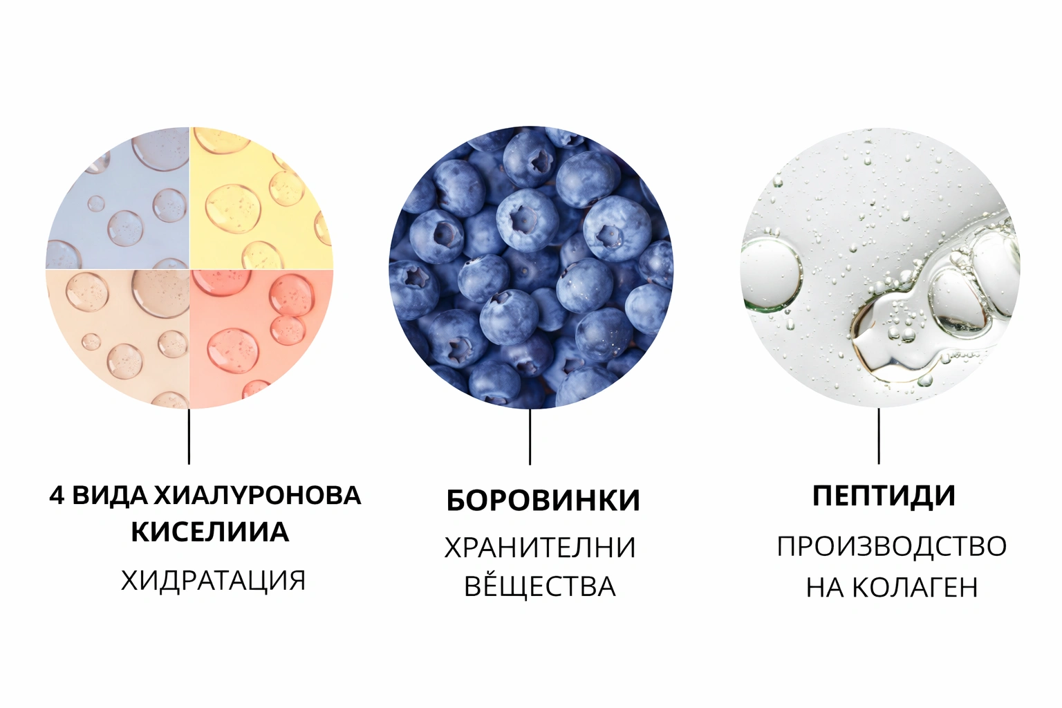 Това е фабриката номер едно за влага на кожата. Хиалуроновата киселина се среща естествено в тялото и осигурява както смазване на ставите, така и влага за кожата. С възрастта нивото на естествената хиалуронова киселина намалява, което води до по-малка еластичност и повече бръчки. Чрез използване на продукти за грижа за кожата, които съдържат хиалуронова киселина, се добавя влага, която намалява видимостта на линиите и бръчките.