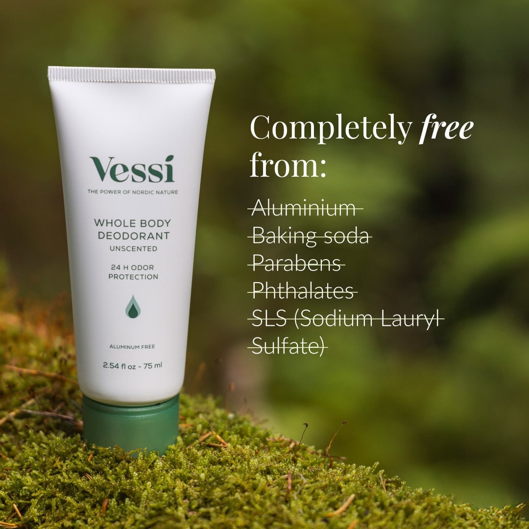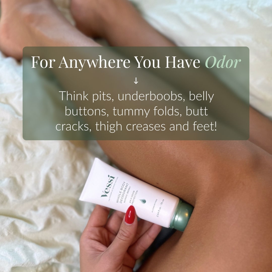 Vessi Whole Body Deodorant може да се използва и под гърдите, в коремните гънки, зад ушите – или навсякъде, където усещате нежелана телесна миризма.